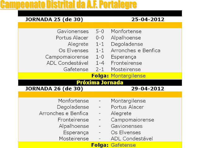 Espaço dedicado ao Futebol Nacional e Distrital dos clubes filiados na Associação de Futebol de Portalegre.